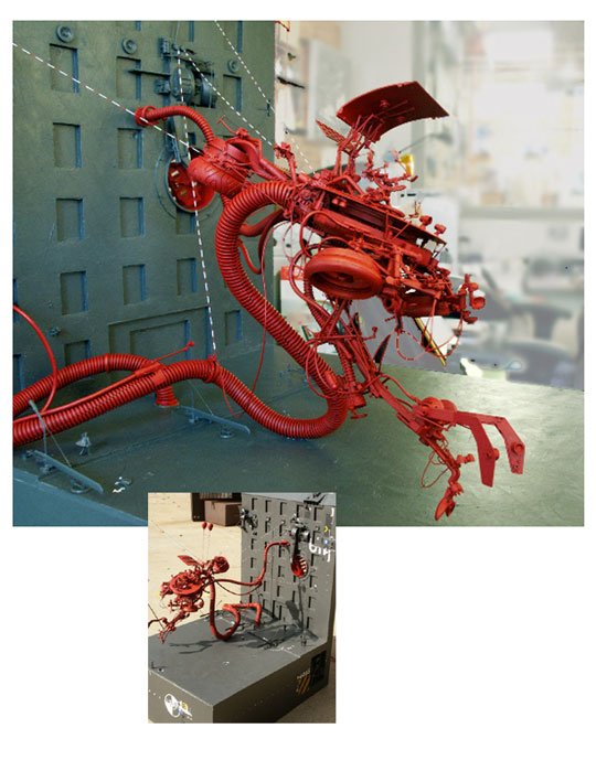 drawings and futuristic machine model concept
